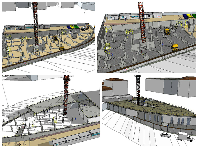 Desde tecnicos2 ofrecemos la posibilidad de realizar la implantación del campamento y el avance de las fases de la obra en 3D. Un “plus” añadido a la documentación técnica, que facilita la comprensión del técnico valorador al detallar y explicar de forma visual la ubicación de todos los elementos objetos de esta implantación de obra: medios de elevación, elementos de seguridad, recorridos de maquinaria, campamento de obra, etc. Estas infografías desarrolladas de las fases de obra, acompañarán a la memoria de ejecución, lo que completará Programa de Trabajos realizado.