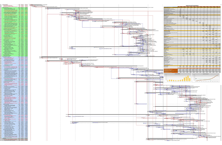 Siempre coordinado con la memoria descriptiva del proceso de ejecución de la obra se desarrollará bajo Microsoft Project 2010 el programa de trabajos. Donde se nos ofrece la realización de diversas planificaciones Gantt / PERT con representación de las unidades de obra más representativas del Proyecto con indicaciones de su duración, fechas de comienzo y fin, y las actividades críticas. También se incluyen Diagramas de Gantt de Tareas Resumen, Lista de Actividades, y Diagrama de Actividades Críticas. También se podrán incluir otros documentos dentro de Project, tales como Gráficos de Asignación de recursos, tiempos de los mismos, etc.…