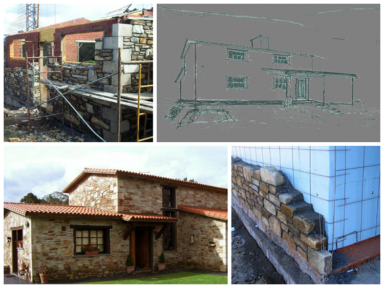 Partiendo de una idea inicial transmitida por el cliente, “casas de pedra como as de antes con tella do país” técnicos2 plantea la ejecución de detalles técnicos y constructivos de última generación, lo que permite alcanzar una imagen final tradicional sin por ello renunciar a las técnicas de construcción más actuales y en la vanguardia de la técnica.
